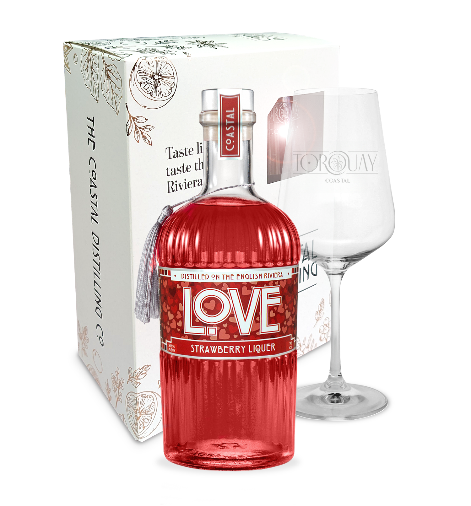 The Coastal ‘Love’ Gin Gift Set pairs a bottle of our handcrafted Love Liqueur with a bespoke Dartington Crystal branded glass, presented in a premium gift box.